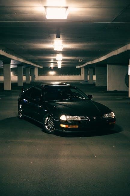 To stop the engine‚ gently apply the brakes and shift the transmission into Park. Turn the key to the “LOCK” position to deactivate the ignition. Always remove the key to prevent accidental operation. Refer to the owner’s manual for detailed instructions and safety precautions regarding engine starting and stopping procedures.